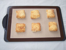 四氟烤盤片又叫烘焙用高溫布/食品烤盤片/不沾布/籠屜布。是專為電烤箱、微波爐、蒸籠等家用烘烤設備設計研發(fā)的。是以進口玻璃纖維基布上涂覆聚四氟乙烯經過特殊工藝而形成耐高溫380度的復合玻纖布。 烤盤片按照所使用的加熱器材不同可以制作成烤籃、高溫墊片、烤盤片,并取得FDA食品認證和SGS檢測報告,客戶可以安全、放心地使用。